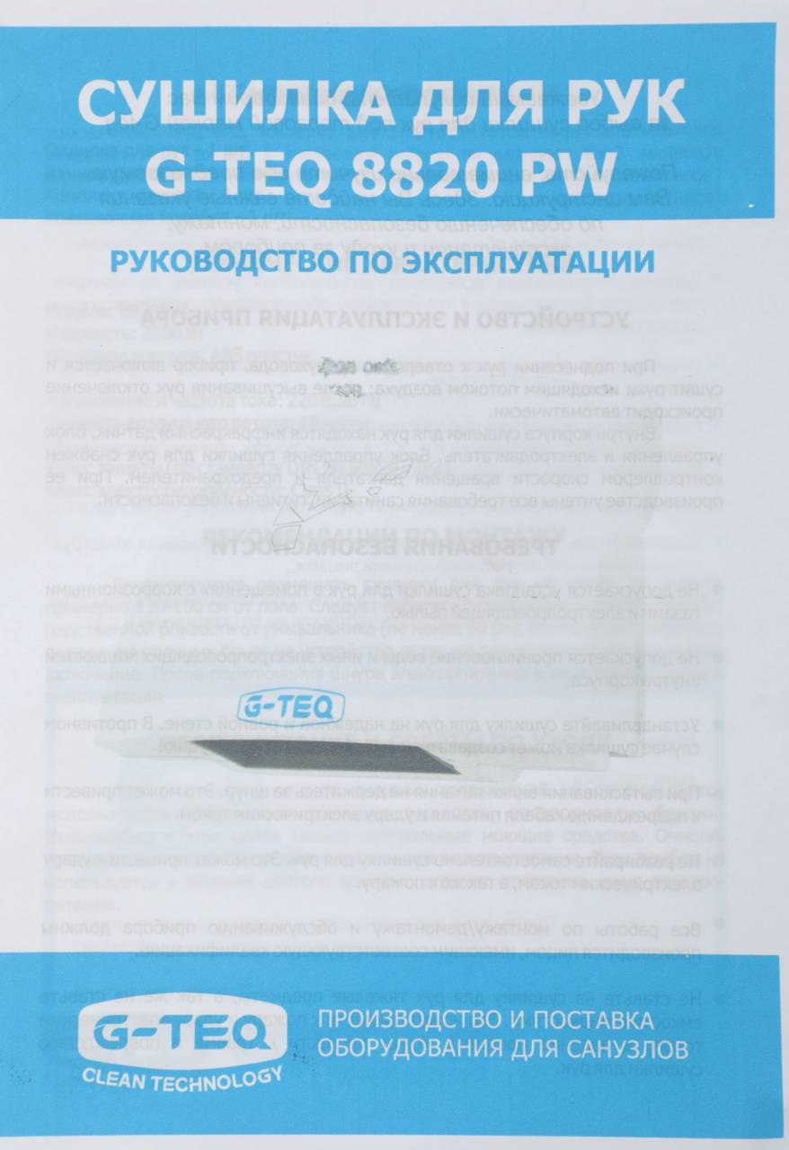 Сушилка для рук G-TEQ 8820 PW 2000Вт белый
