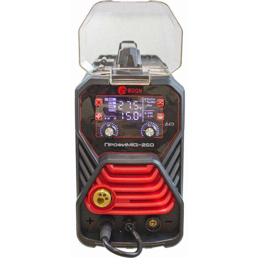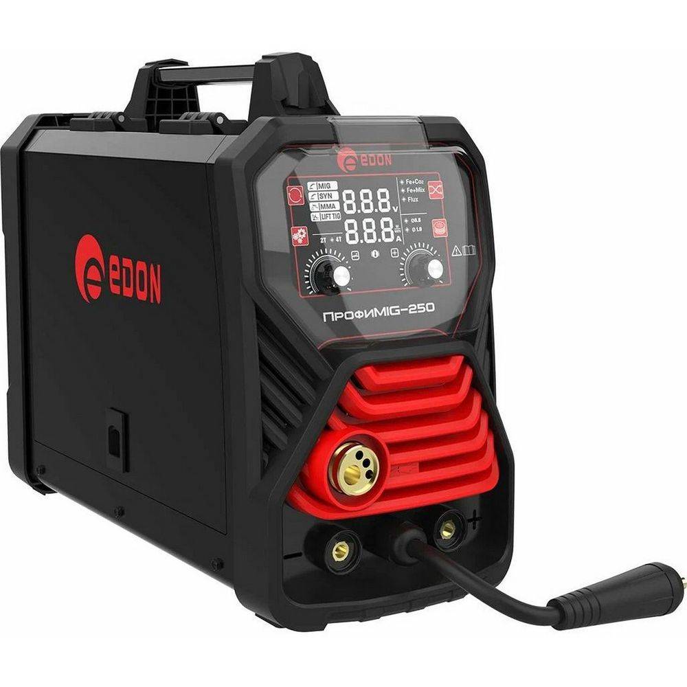 Сварочный аппарат Edon полуавтоматический ПрофиMIG-250 MIG 10,6 кВт 20-250А, MMA 13,1 кВт 20-250А, раб.цикл 60%, КПД 85%, диаметр: электроды 2-4мм, проволока 0,8-1мм Bad Pack MIG-MAG/NoGas/MMA/LIFT TIG/2T/4T/SYN Сварка тонких металлов и нержавеющей стали.