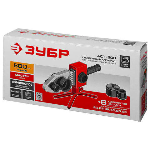 Сварочный аппарат для полипропиленовых труб ЗУБР, 800 Вт, 50-300С, 6 насадок, АСТ-800