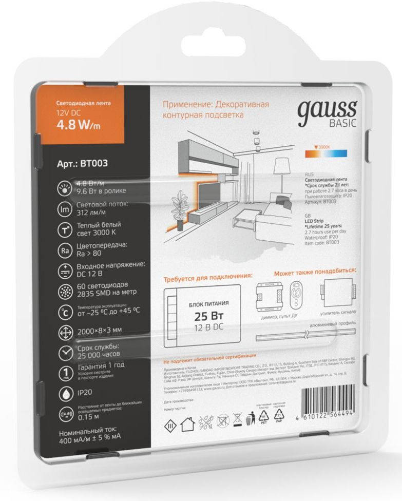 Светодиодная лента GAUSS Лента светодиод. Basic 2м