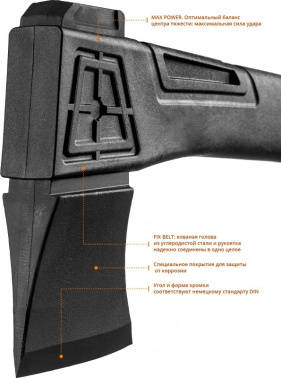 X-FIBER: легкое и суперпрочное топорище из армированного нейлона. MAX POWER: Оптимальный баланс центра тяжести: максимальная сила удара. Выпуклый клин для легкого вытаскивания из бревна. Двойная закалка токами высокой частоты для оптимальной твердости.