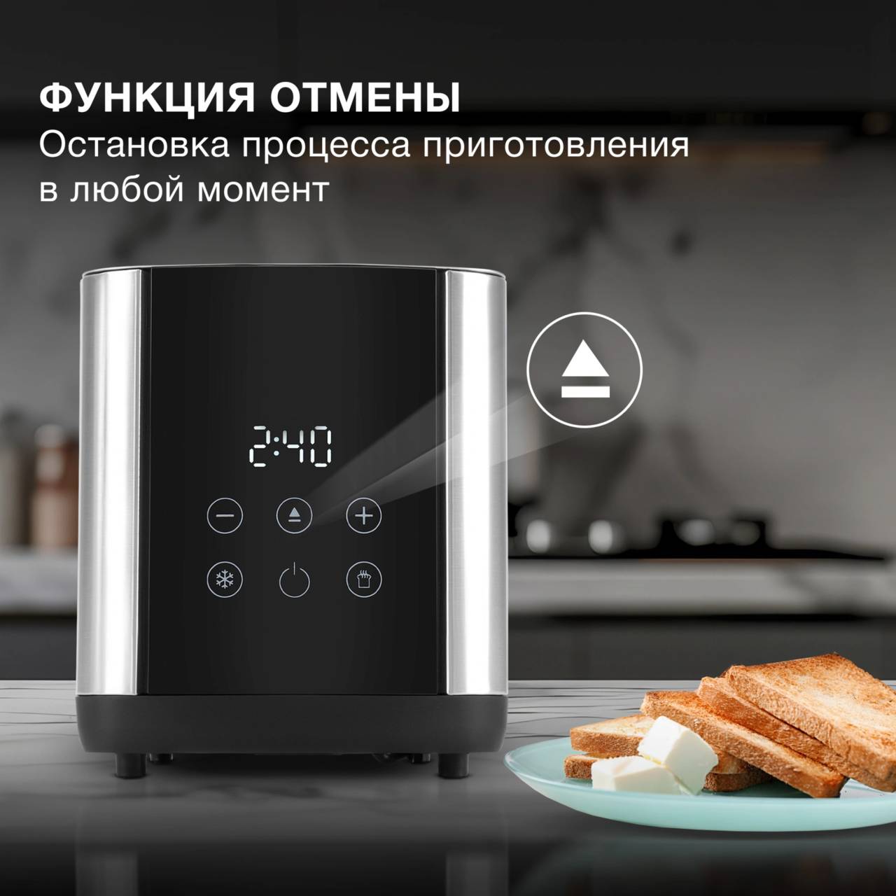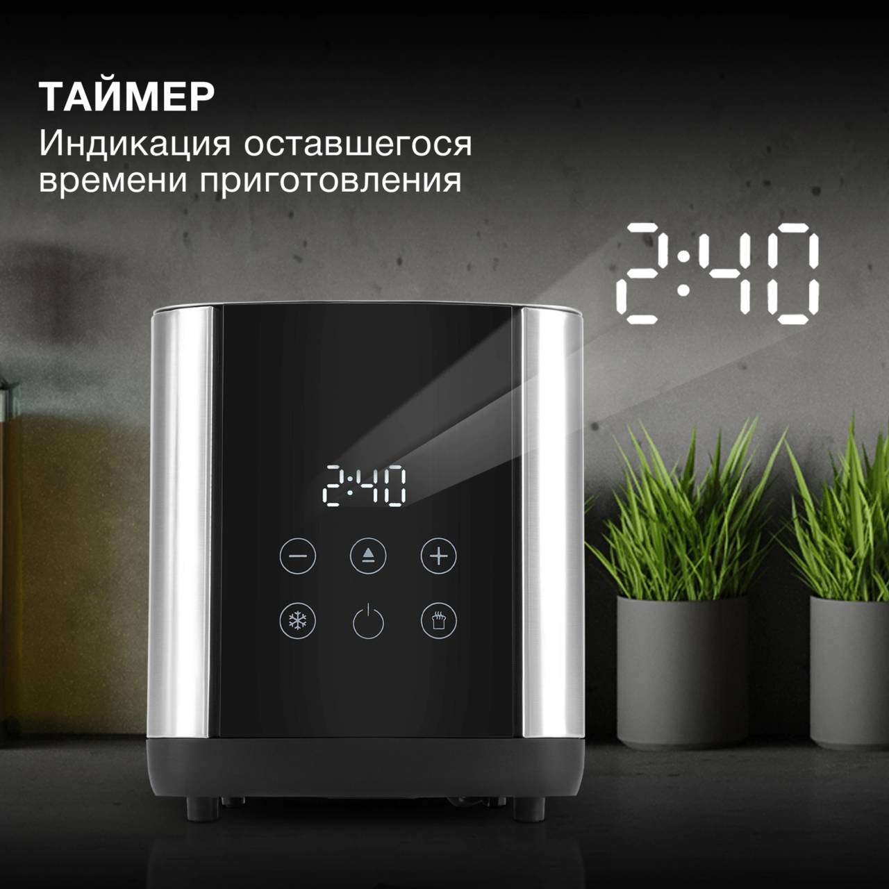 Обратите внимание:Сенсорное управление, а так же таймер отчета окончания поджаривания