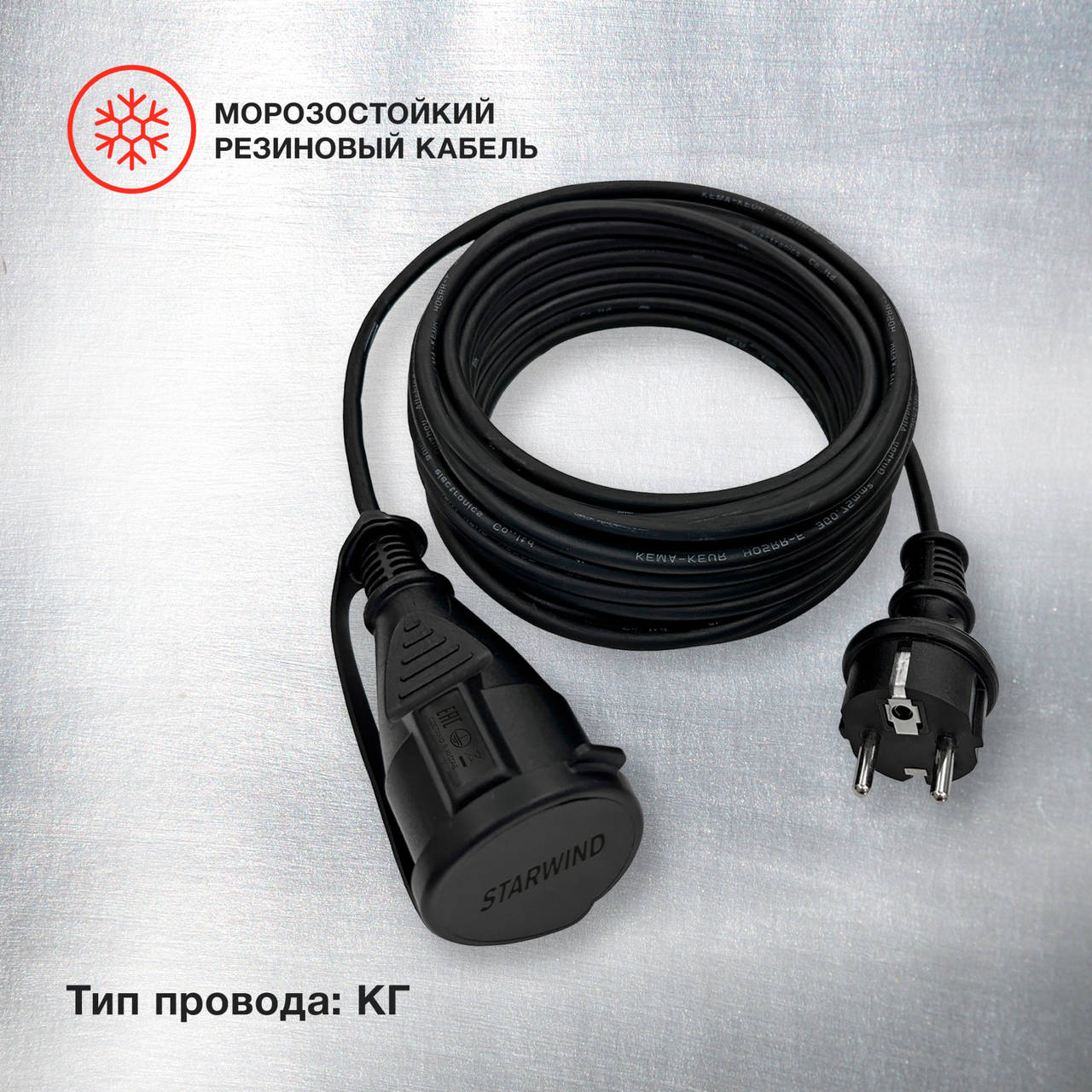 Электрический удлинитель STARWIND Удлинитель силовой ST-PS1.20/FRB-16 3x1.0кв.мм 1розет. 20м КГ 16A без катушки черный