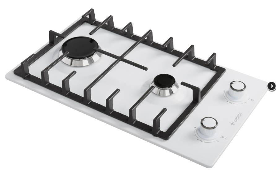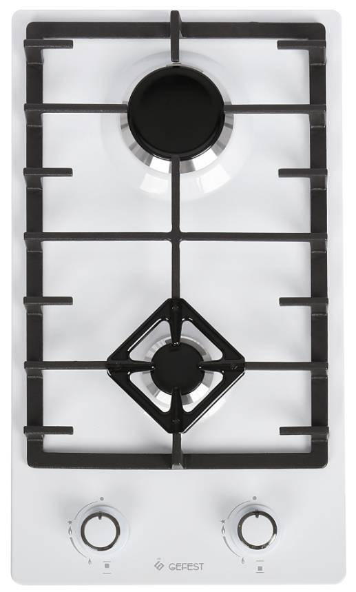 Варочная поверхность газовая. Цвет Белый. Габариты (ШхГхВ) 30х53х9,5см. Эмалированная варочная поверхность. Двухгорелочный стол. Газ-контроль горелок стола, чугунные решетки горелок стола, большая и малая горелка, фиксированное положение «малое пламя», электророзжиг горелок, встроенный в ручки.