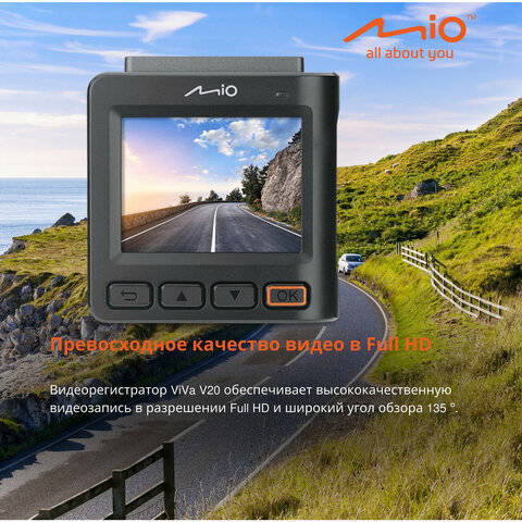 Автомобильный видеорегистратор MIO Видеорегистратор автомобильный ViVa V20, экран 2", 135° 1920x1080 FULL HD, G-сенсор, MIO-VIVA-V20